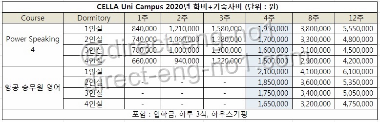 2. 어학연수 수업시간과 기숙사 생활은 어떻게 되는가?수업은 신청하신 코스에 따라 편차가 있습니다.아침 8시~오후 5시 사이에 수업이 진행되며 12시는 점심시간입니다.(A코스: 5시간/B코스: 6시간, C코스: 7시간, 풀코스: 8시간) 기숙사는 수업 중 강의실과 동일한 건물에 위치하고 있으며 식사, 청소, 세탁 등 생활지원 서비스를 제공합니다.예를 들어 청소는 주 2회, 세탁은 주 3회, 식사는 평일 주말 포함 세 끼를 무료로 제공하고 있습니다.