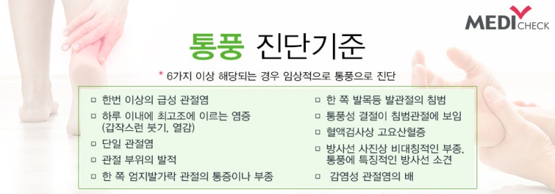 기온이 내려가면 요산염이 굳기 쉬워져 통풍 증상을 일으킬 확률이 높아집니다. 아래 내용을 보면서 저도 통풍의 가능성이 없는지 확인해 볼까요? -엄지, 발목, 무릎 등 관절이 붉게 붓는다. -위 부위에서 통증이 느껴진다. -발열과 오한이 동반될 수 있다.- 이불이 긁히거나 양말을 신을 때도 통증이 느껴진다.- 특히 밤에 통증의 정도가 심하다.